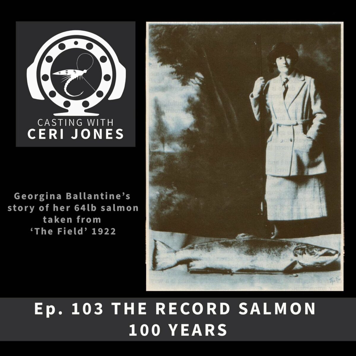 This week Ceri tells the story of the record salmon of 64lb caught by Georgina Ballantine on the River Tay. Caught 100 years to the day, 7th October 1922 and still the British Record.